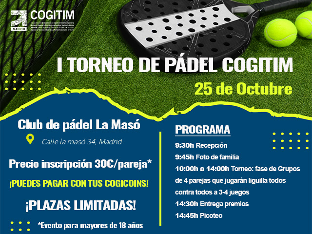 Desde el COITIM tenemos el placer de anunciar la celebración del Primer Torneo de Pádel para colegiados, una iniciativa pensada para fomentar el deporte, el compañerismo y la participación de nuestros colegiados en un ambiente distendido y saludable.