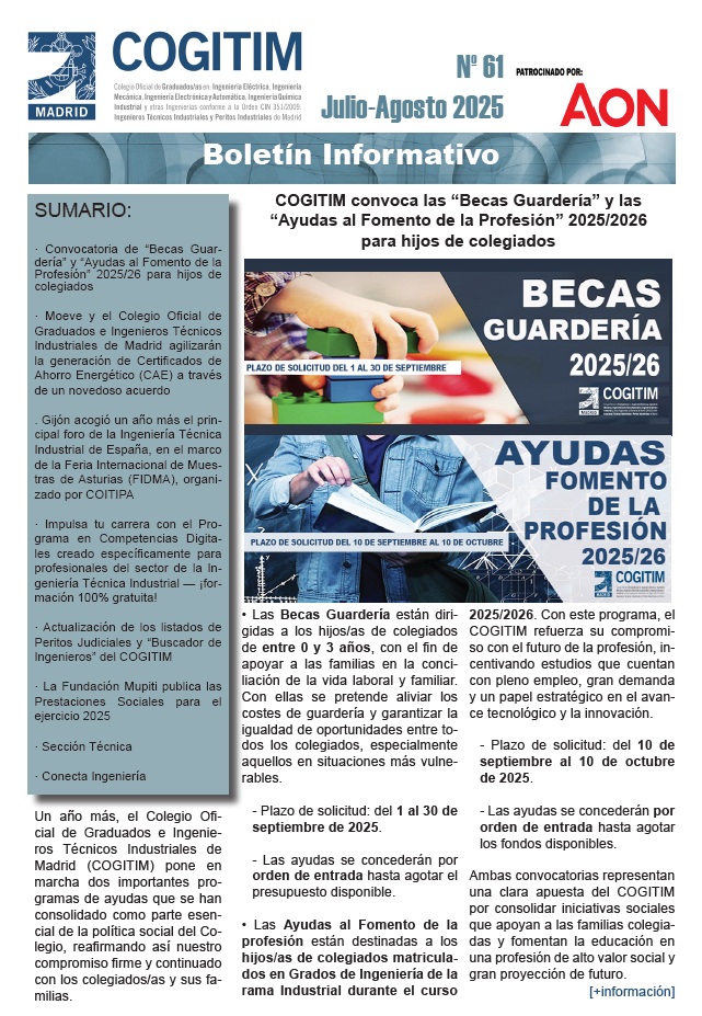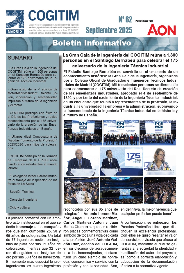 El Colegio Oficial de Ingenieros Técnicos Industriales de Madrid (COGITIM) ha publicado su Boletín I...